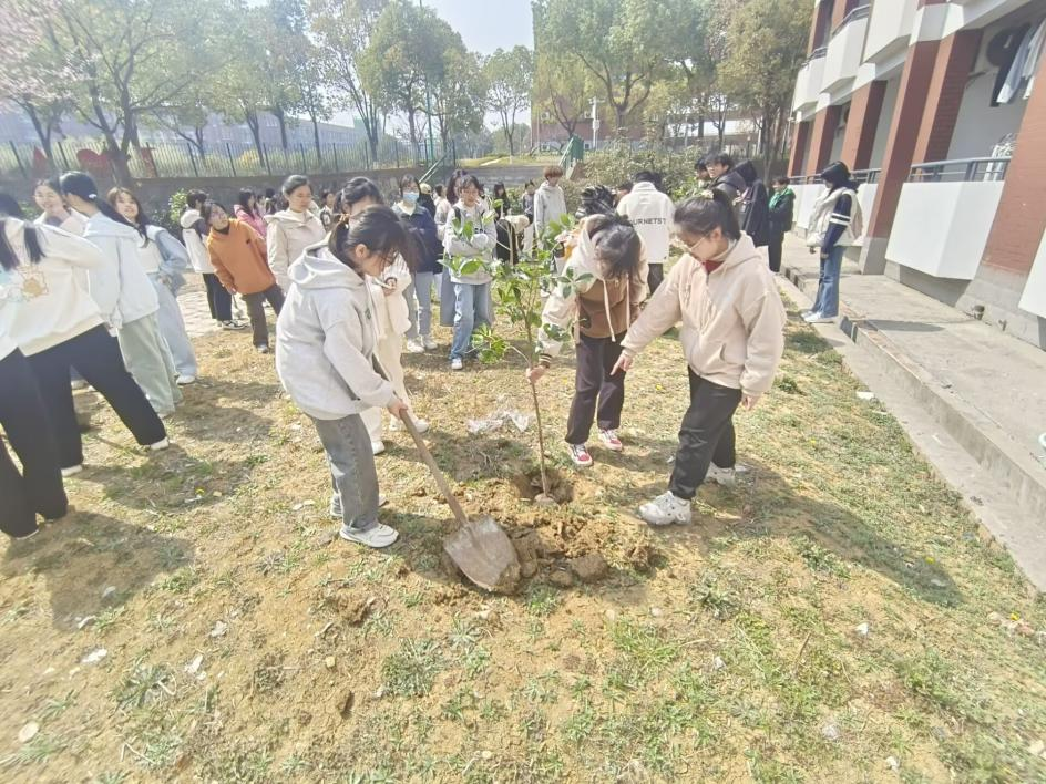 同学们热情高涨,以寝室为单位按照植树区域开始植树工作。他们挥锹铲土、扶苗培土,各个环节都井然有序,配合默契。尽管汗水湿透了衣背,但大家的脸上都洋溢着快乐的笑容。每位同学自由播种,共同分享心得和喜悦,在收获快乐的同时陶冶了情操。
